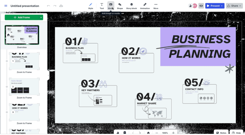 You can preview your presentation anytime to see how everything flows. Zoom through your frames, adjust the order, and fine-tune the pacing until it feels just right.