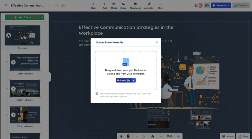 Short on time? Prezi AI is the quickest way to go from PPT to a presentation.