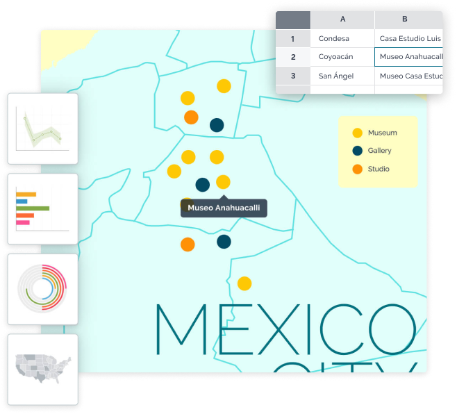Crea grafici, mappe e grafiche interattivi che danno vita alla tua storia.